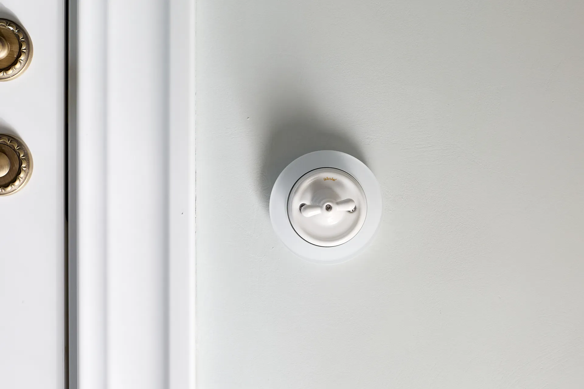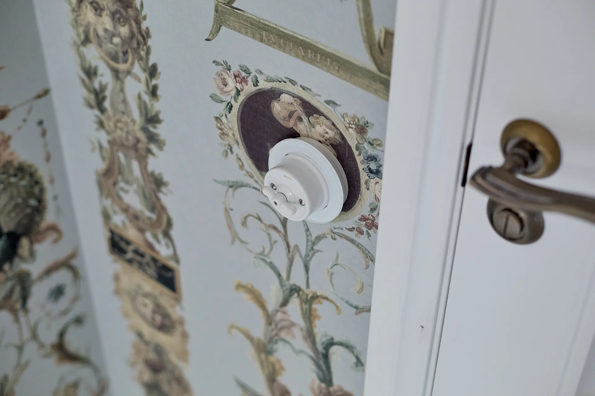 Особое внимание уделили электроустановочным изделиям. В проекте использовались механизмы Werkel, выполненные в стиле ретро. Все изделия имеют прочный керамический корпус, а поворотные выключатели украшают элегантные ручки-барашки. Эти детали стали важной частью интерьера, подчеркивая его исторический характер и добавляя нотку аристократизма.