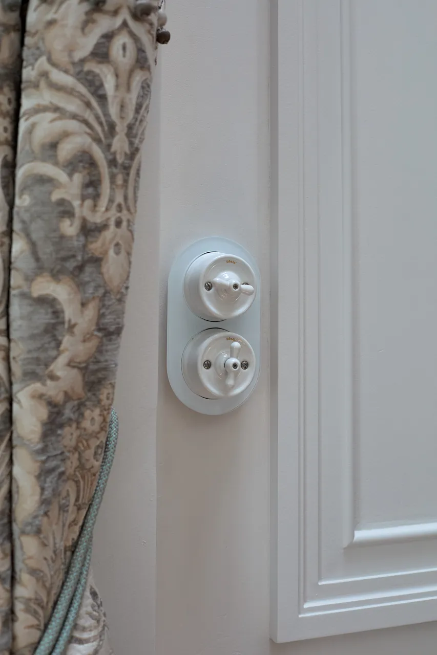 • Эстетика: поворотные выключатели с ручками-барашками и керамические механизмы идеально вписываются в королевский стиль, создавая атмосферу роскоши.